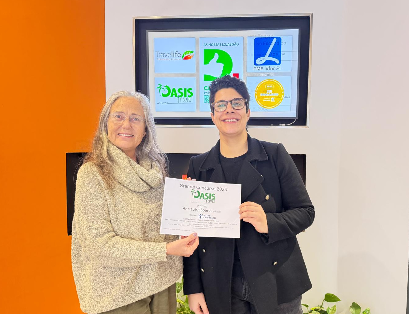 Dia 31 Janeiro 2026 foi realizado mais um sorteio do Grande Passatempo OASIS, que todos os anos promovemos. De entre todos os nossos passageiros de viagens em grupo e que nos fizeram chegar a sua opinião através do preenchimento do nosso Inquérito de Qualidade, foi sorteado um Cruzeiro Royal Caribbean de 1 semana nas ILHAS GREGAS a bordo do BRILLIANCE of the SEAS.