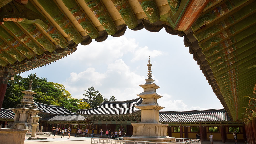 Pequeno-almoço no hotel e saída para as últimas visitas em Gyeongju. Visita ao Templo Bulguksa, obra-prima emblemáticas da idade de ouro da arte budista do reino de Shilla, classificado como Património Mundial da Humanidade pela UNESCO, seguindo-se a Gruta Seokkguram, considerada um dos melhores exemplos de esculturas budistas do mundo. Acredita-se que tenha sido construída por Kim Daeseong. A corte de Silla concluiu a gruta em 774. A gruta é conhecida pela sua beleza arquitectónica, obras-primas escultóricas e significado espiritual.