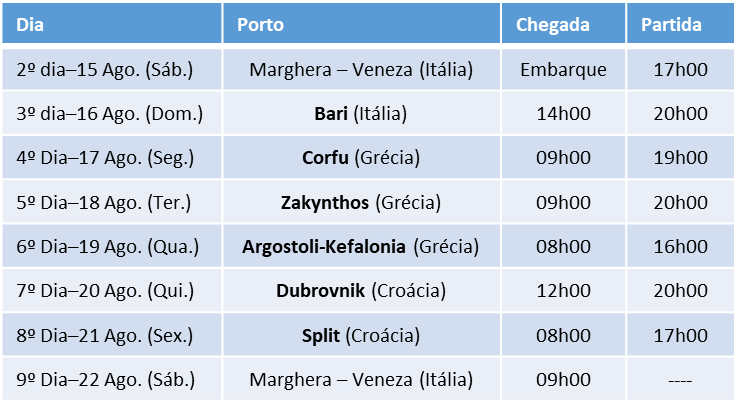 1º Dia – 14 Agosto (Sex.) – LISBOA / VENEZA